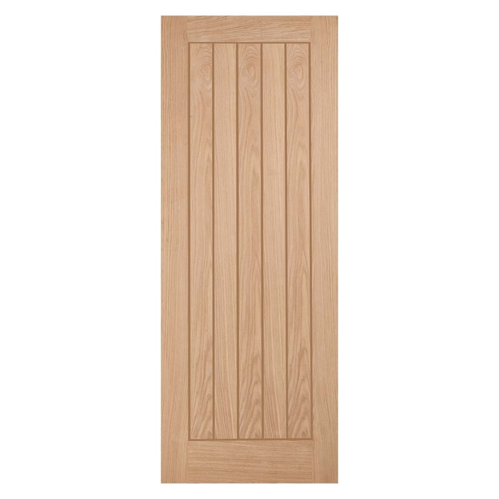 This internal oak veneer door features a five vertical panel design. It offers a modern twist on a traditional style and will look perfect in any contemporary home. Manufactured with a solid core and real wood veneer pressed onto a timber frame, this door is supplied unfinished.