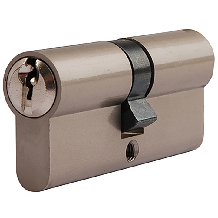 A nickel plated 5-pin euro profile double cylinder for use with euro profile locks.