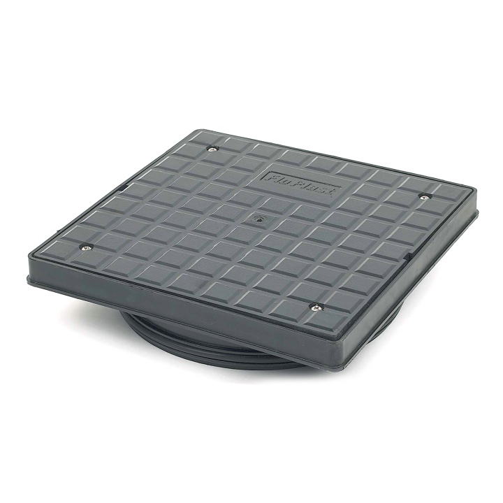 The FloPlast 340mm Black Plastic Square Sealed Drain Cover and Frame is for use on 300mm mini access chambers with screwed down lid. It can take loadings up to a maximum of 1.5kN (A15 rating). For use with mini access chamber inspection chambers up to 600mm deep.