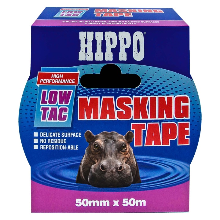 Hippo Low Tac Masking Tape for use on delicate surfaces where conventional masking tapes could damage the surface. Ideal for use on freshly painted or plastered walls, wallpaper, treated wood, veneer, laminate and vinyl.