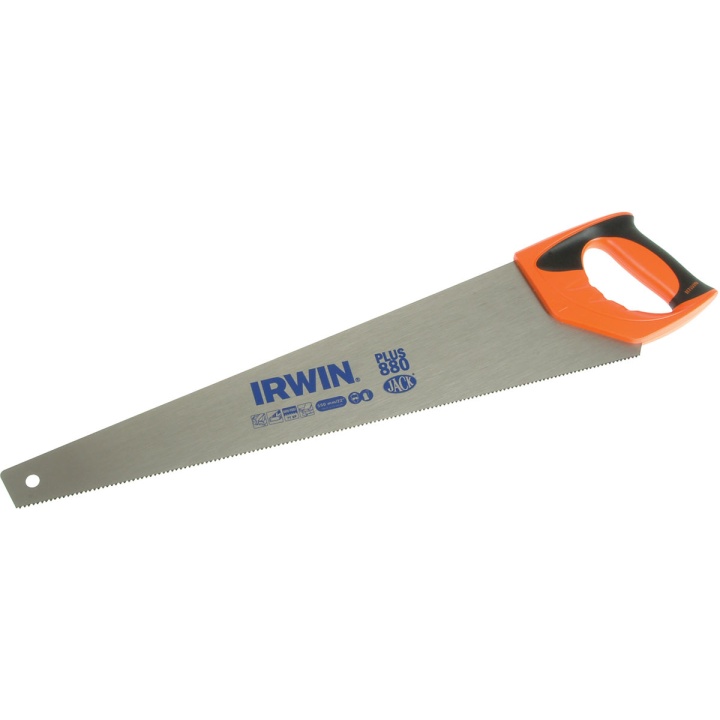An Irwin Universal 880 Triple Ground Hard Point Saw with a high-quality C75 steel blade and triple ground tooth design for faster-cutting.